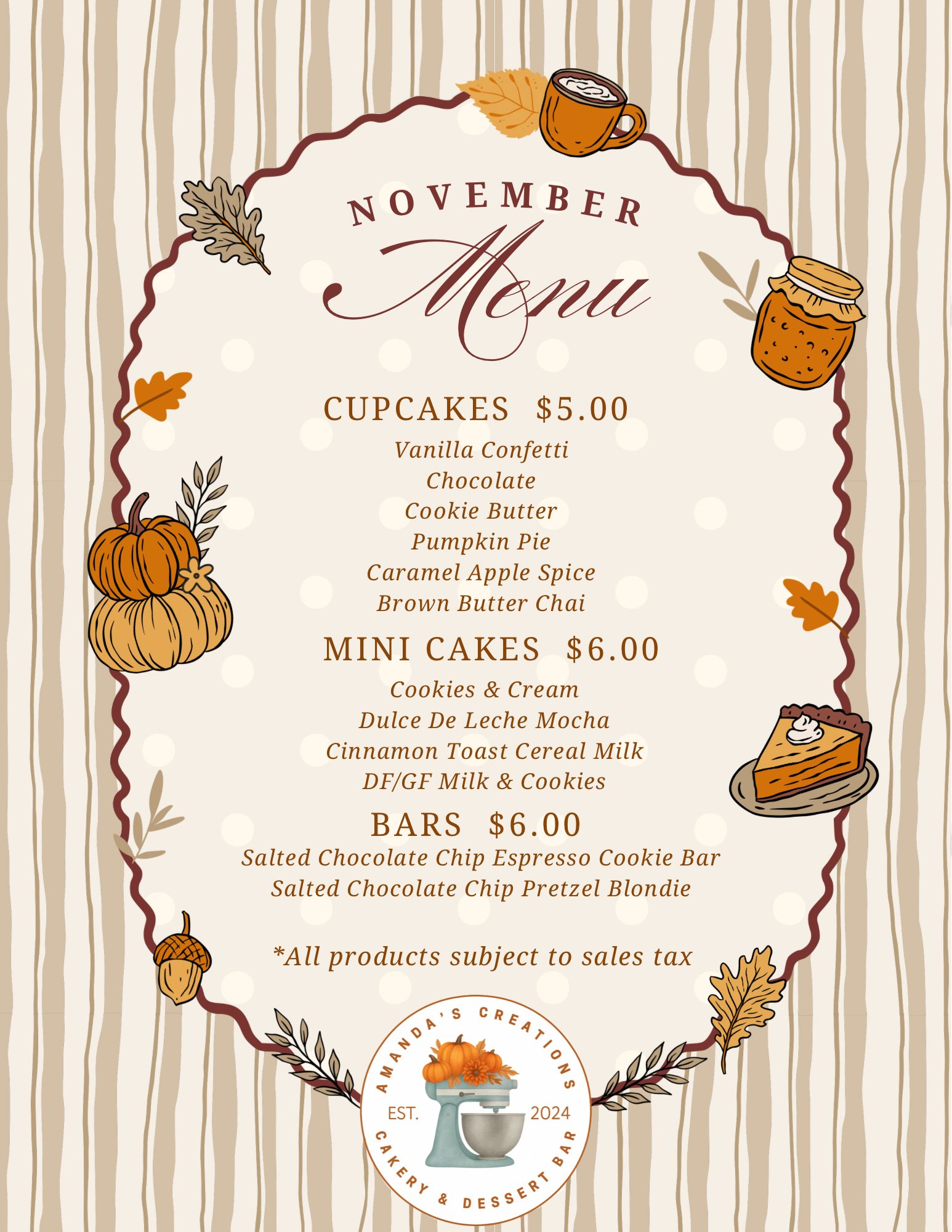 It all starts with a sweet idea! Whether you're dreaming of a stunning cake for a special occasion or just craving some delicious desserts, you’ve come to the right place. At Amanda's Creations, I love turning your dessert dreams into a delightful reality!